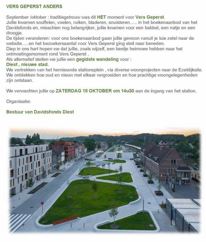 18 okt # 12031 VERS GEPERST ANDERS Gegidste wandeling: Diest , nieuwe stad. zaterdag 18 oktober 2025 om 14:00 uur Over Sprekers Aanmelden Labels: Cultuurregio Oost-Brabant
