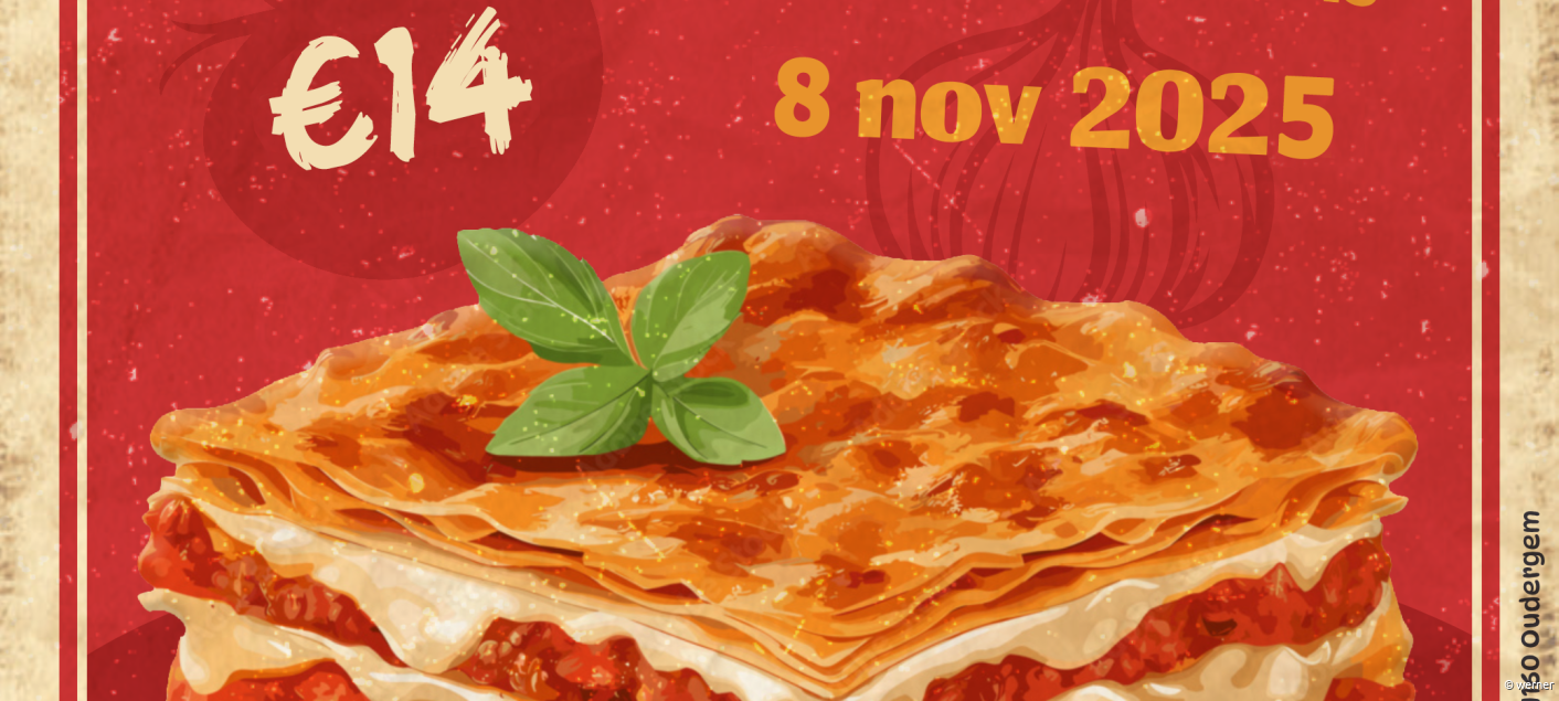 Steun de 11.11.11.-actie van de Werkgroep Ontwikkelingssamenwerking Oudergem. Vers gemaakte lasagne aan 14 euro per portie.