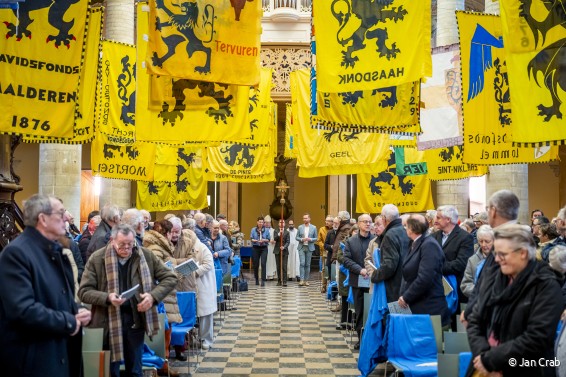 Om 11.00 uur volgde de eucharistieviering, voorgegaan door E.H. Lode Aerts, bisschop van Brugge, in concelebratie met pastoor Juan Carlos Tinjaca. De muzikale omkadering werd verzorgd het gregoriaans koor Cantus Planus onder leiding van Gilbert Huybens, organist David Burn en een koperskwintet onder leiding van Jan Nicolaers. Op het einde van de viering werden de afdelingsvlaggen plechtig gezegend, een indrukwekkende constructie van Fugzia die het hemelgewelf sierde, waarna de Belgische organist Wim Winters het publiek trakteerde op een intiem orgelconcert.