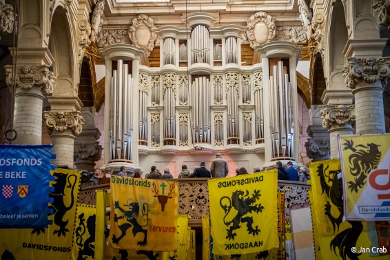 Vanaf 10.30 uur zwaaiden we de kerkdeuren wijd open voor een 250-tal genodigden die stonden te popelen om aan de dag te beginnen. Paul Carteus, lid van het Bestuursorgaan van Davidsfonds, zette de toon met sprankelende muziek van Johann Sebastian Bach en Dietrich Buxtehude op het indrukwekkende Contiusorgel, dat hij zelf bespeelde.