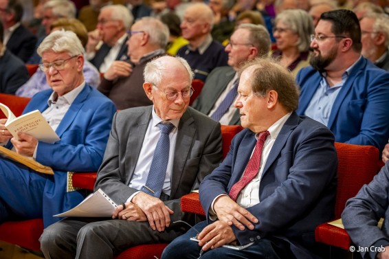 In een levendig panelgesprek, gemodereerd door Peter Verlinden, deelden Bart Maddens, Rik Torfs en Herman Van Rompuy hun inzichten over de maatschappelijke rol en toekomst van cultuur en gemeenschap. Nationaal voorzitter Peter De Wilde lichtte vervolgens de vernieuwde toekomstvisie van Davidsfonds toe, je kan de speech integraal lezen via deze link. Nadien stelden Dirk Remmerie en Valerie Vermassen, samen met vrijwilligers Guy Tegenbos en Petra D'hondt, het Jubileumboek plechtig voor, een boek van en voor Davidsfonds als inspirerende aftrap van een jubileum dat niet alleen terugblikt, maar vooral vooruit kijkt.