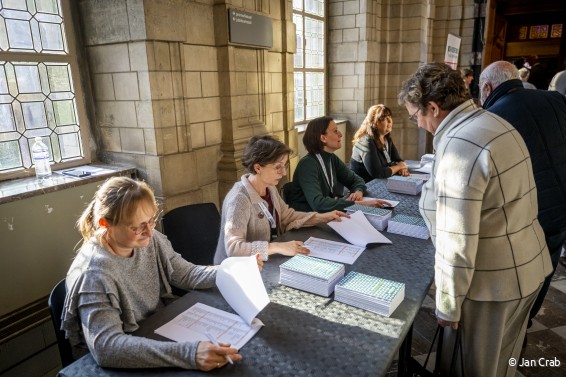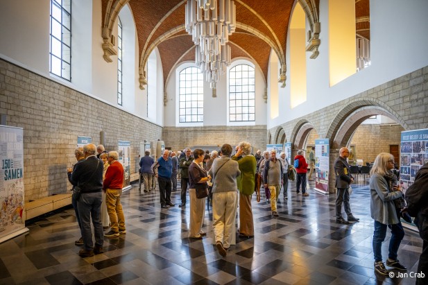 Na de middag opende in de Jubileumzaal van de Universiteitshal KU Leuven een doorlopende gelegenheidstentoonstelling over 150 jaar Davidsfonds, gerealiseerd in nauwe samenwerking met KADOC en Xpair Communication. De tentoonstelling is ontworpen als een reizend project, speciaal voor onze afdelingen, zodat zij deze op hun beurt kunnen presenteren aan hun eigen publiek. De veelheid van verhalen die te lezen waren, bracht de rijke geschiedenis van cultuur, taal en gemeenschap tot leven, en illustreert hoe Davidsfonds al anderhalve eeuw mensen samenbrengt en inspireert.